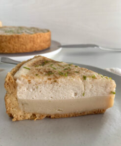Massa quebradiça, recheio de brigadeiro de limão e chantilly vegano.